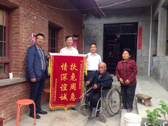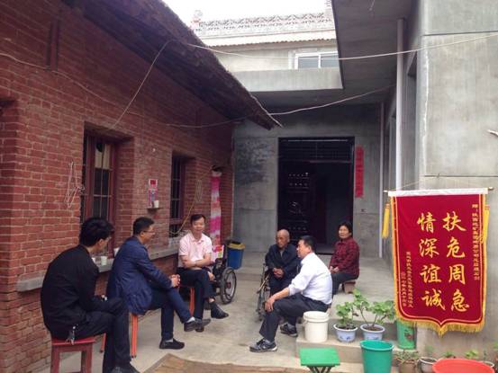 石總和王書記驅(qū)車到天度村委會(huì)未做停留,在駐村干部陪同下徑直來到結(jié)對(duì)幫扶的貧困戶馬治義家里。走進(jìn)蔡馬組街道,老遠(yuǎn)就看見近2米寬的紅色油漆大門特別顯眼,這就是馬治義享受危房改造政策剛剛落成的嶄新院子。進(jìn)入大門,寬敞明亮的磚混結(jié)構(gòu)平房映入眼簾,石總和王書記里里外外仔細(xì)查看房屋構(gòu)造,高興的表示,房子既漂亮又實(shí)用,有了安全住房我們就放心了。馬治義坐在輪椅上激動(dòng)的說:多虧地質(zhì)公司的慷慨資助,我才能住上這么好的房子,我真的是做夢(mèng)都沒有想到啊,太感謝,你們對(duì)我太好了,說著馬治義讓老伴取出了一面錦旗雙手遞給了石總和王書記,表達(dá)感激之情。隨后,石總、王書記和在院子里促膝交談,詢問生活上還有什么困難,馬治義夫婦表示,黨的政策享受了,領(lǐng)導(dǎo)們還為我費(fèi)了這么多心,我知足了,沒啥困難了。