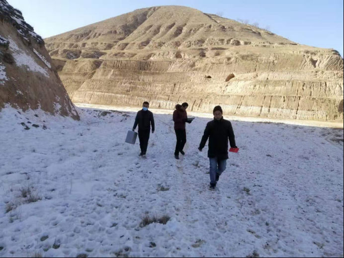 進入嚴冬,面對疫情、嚴寒、工期的多重考驗,陜西地質工程有限公司項目組人員積極響應,分為兩個野外調查組歷時15天,對吳起縣70多個地質災害隱患點和遙感解譯點進行了野外詳細調查。為了詳實的調查每一個地質災害隱患點和核查每一個遙感解譯點,項目組技術人員不畏艱辛穿梭于荒坡灌叢中探找點位、采集數據,白天奔波于野外調查現場,晚上回到駐地對調查數據整理至深夜。