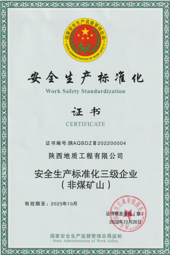 我公司非煤礦山安全生產(chǎn)標準化通過審核。