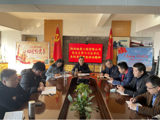 11月10日,陜西地質(zhì)工程有限公司黨總支召開黨員大會,集中學(xué)習(xí)習(xí)近平總書記來陜考察重要講話精神,黨總支書記王強社主持會議,全體黨員參會。