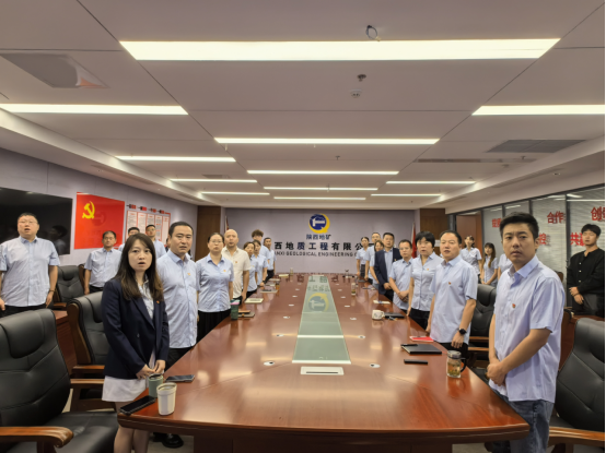 上午8:50,全體黨員、干部來到會議室,整齊就座,懷著崇敬的心情等待大會開始。當莊嚴的國歌響起,全體人員集體起立,齊聲高唱,歌聲激昂,充滿了對祖國的熱愛和對先烈的緬懷之情。