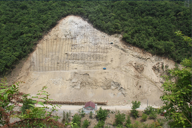 G108洋縣土地嶺段K1520+300右側山體滑坡,工程區(qū)東西長80m、高程范圍1040m-1120m、高差80m。