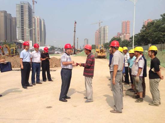 白林科一行頂著烈日,深入陜西地質(zhì)工程總公司西安地鐵一號線延伸段上林路站樁基礎(chǔ)項目施工現(xiàn)場,對大家高溫堅持施工生產(chǎn),搶時間,促進(jìn)度,以實際行動弘揚(yáng)地質(zhì)人“四特別”精神給予充分肯定,并為他們送上了慰問金,把總公司領(lǐng)導(dǎo)的問候和關(guān)懷傳遞給每位員工。