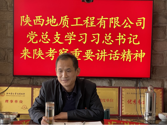 11月10日,陜西地質(zhì)工程有限公司黨總支召開黨員大會,集中學(xué)習(xí)習(xí)近平總書記來陜考察重要講話精神,黨總支書記王強社主持會議,全體黨員參會。